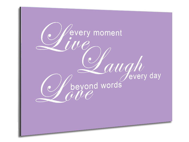 Love Quote Live Every Moment 3 Lilac Printed on brushed aluminium dibond. A modern way to display art and easy to maintain.