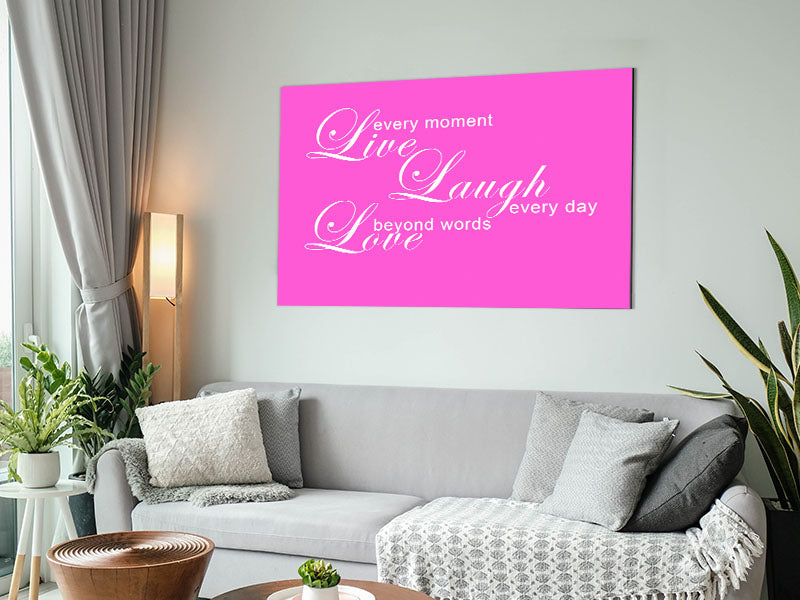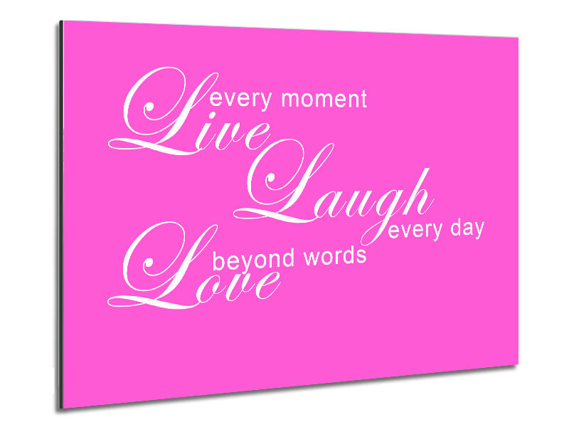 Love Quote Live Every Moment 3 Vivid Pink Printed on brushed aluminium dibond. A modern way to display art and easy to maintain.