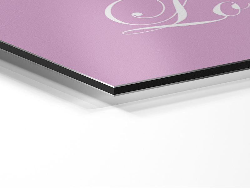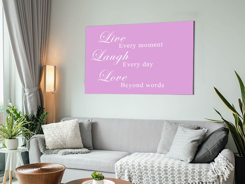 Love Quote Live Laugh Love Pink Printed on brushed aluminium dibond. A modern way to display art and easy to maintain.