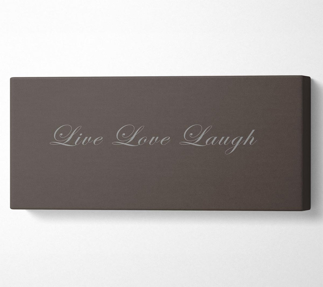Love Quote Live Love Laugh 2 Chocolate canvas, printed on coated polyester canvas. Mounted on to a 44mm box frame, ready to hang.