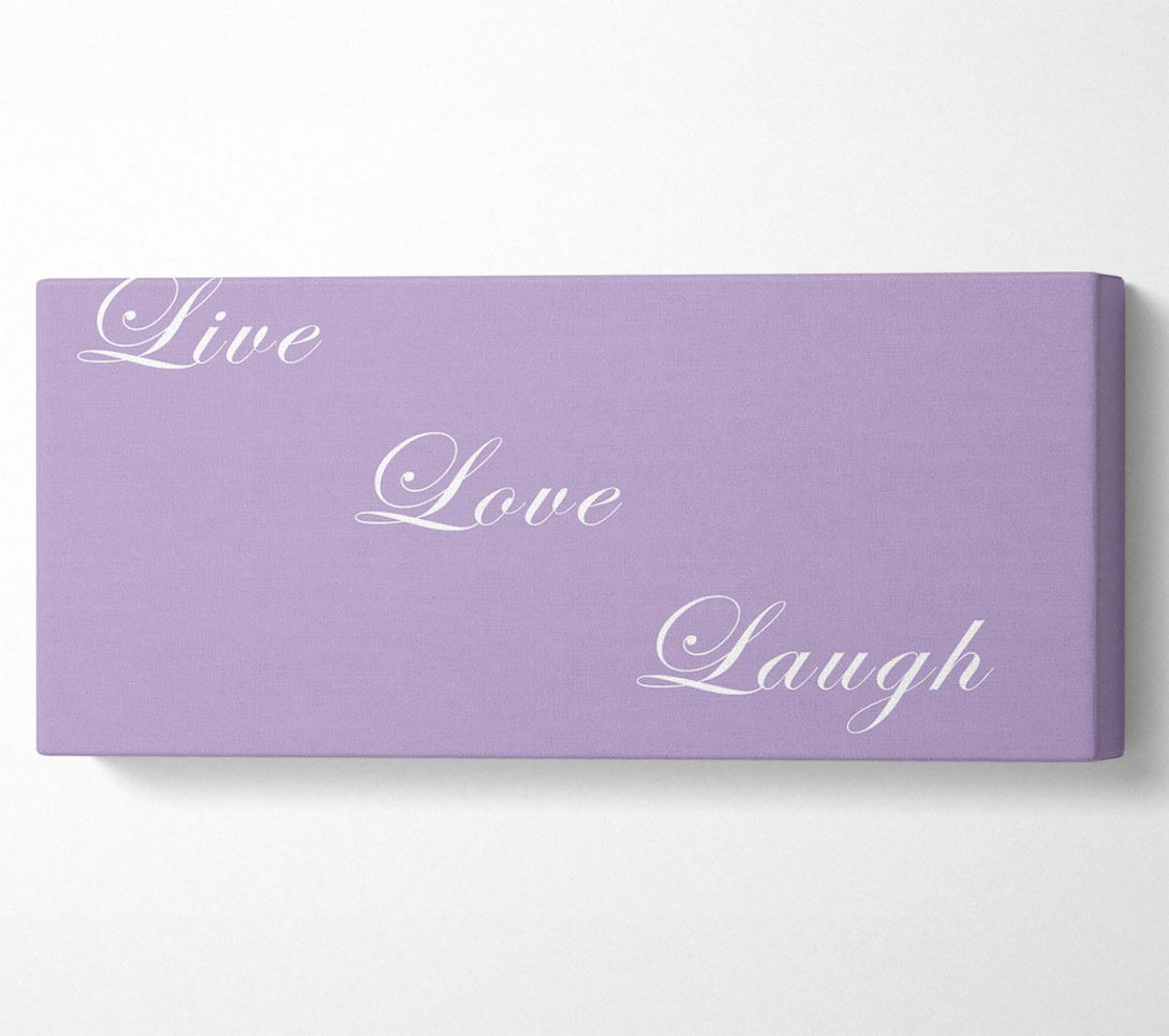 Love Quote Live Love Laugh Lilac canvas, printed on coated polyester canvas. Mounted on to a 44mm box frame, ready to hang.