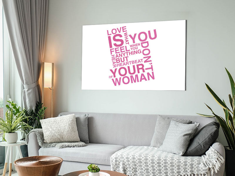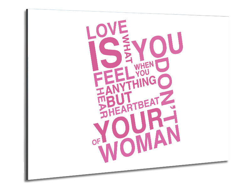 Love Quote Love Is What You Feel Pink Printed on brushed aluminium dibond. A modern way to display art and easy to maintain.