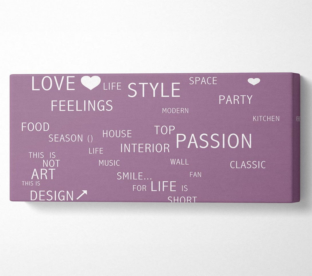 Picture of Love Quote Love Life Dusty Pink Panoramic Canvas Wall Art