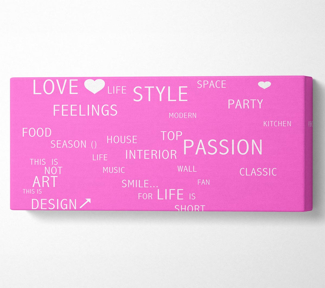 Picture of Love Quote Love Life Vivid Pink Panoramic Canvas Wall Art