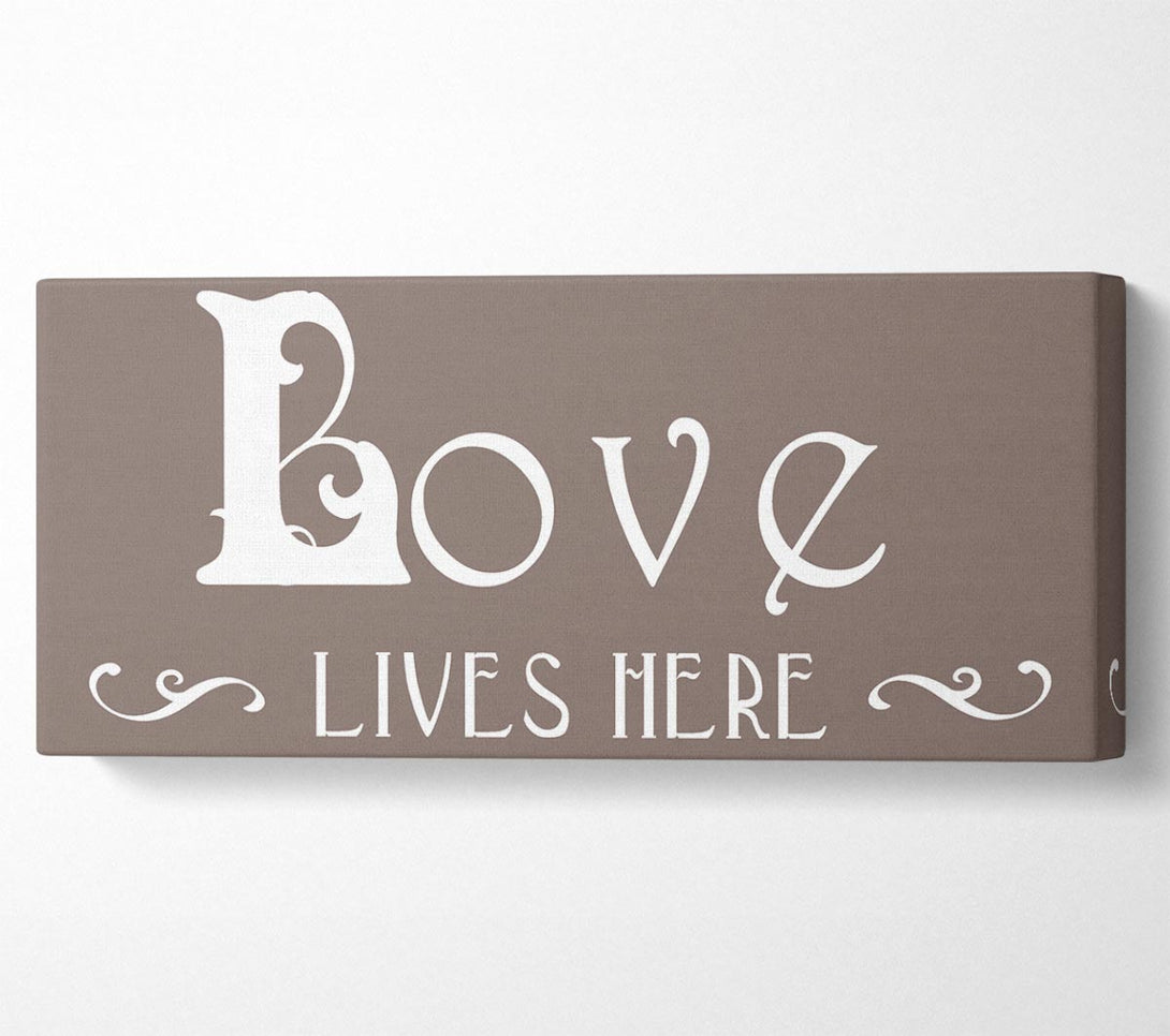 Picture of Love Quote Love Lives Here Vines Beige Panoramic Canvas Wall Art