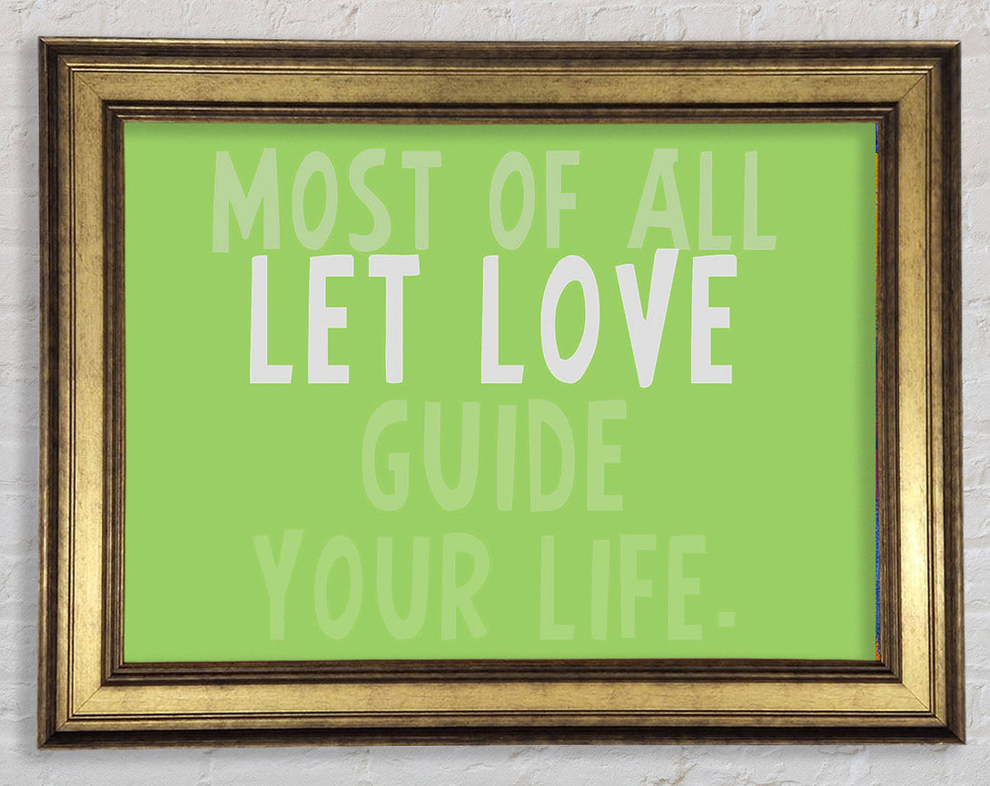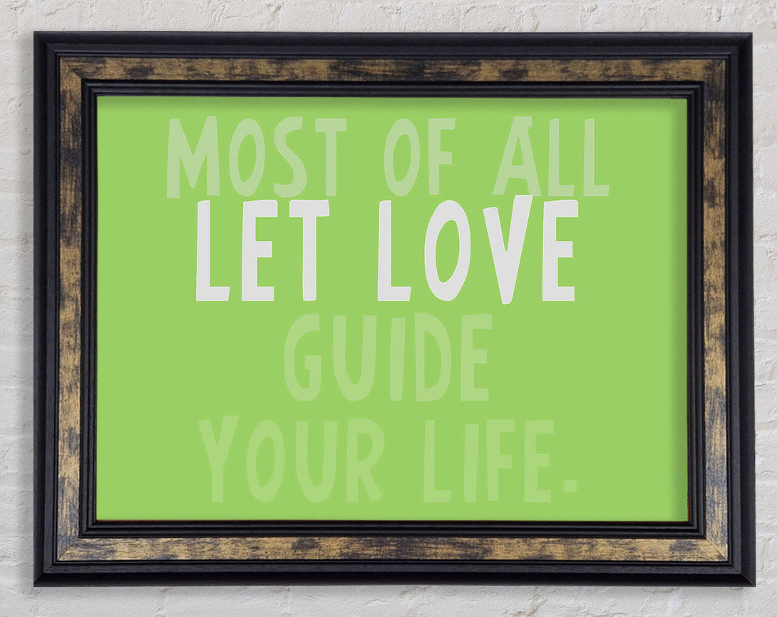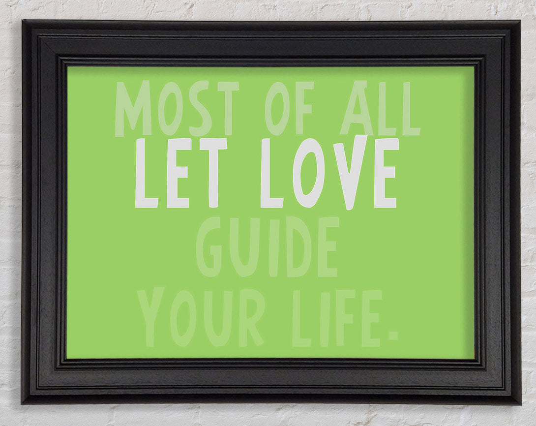 Love Quote Most Of All Let Love Guide Your Life Lime Green Framed Print