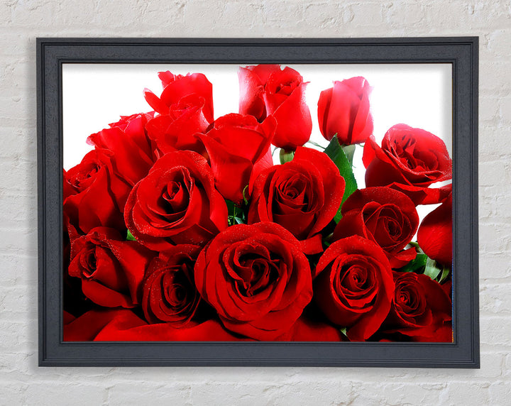 Brighten up any room with our Lovely Red Roses Framed Print. This stunning piece of framed art captures the timeless beauty of red roses, making it a perfect addition to your home or office. Available in six sizes, from small to oversized, you can find the perfect fit for any space. Choose from a variety of frame colors to match your decor. Each piece is handmade in the United Kingdom, ensuring high-quality craftsmanship and attention to detail. Ready to hang, this framed print is both convenient and elegant. Add a touch of nature's beauty to your walls today!