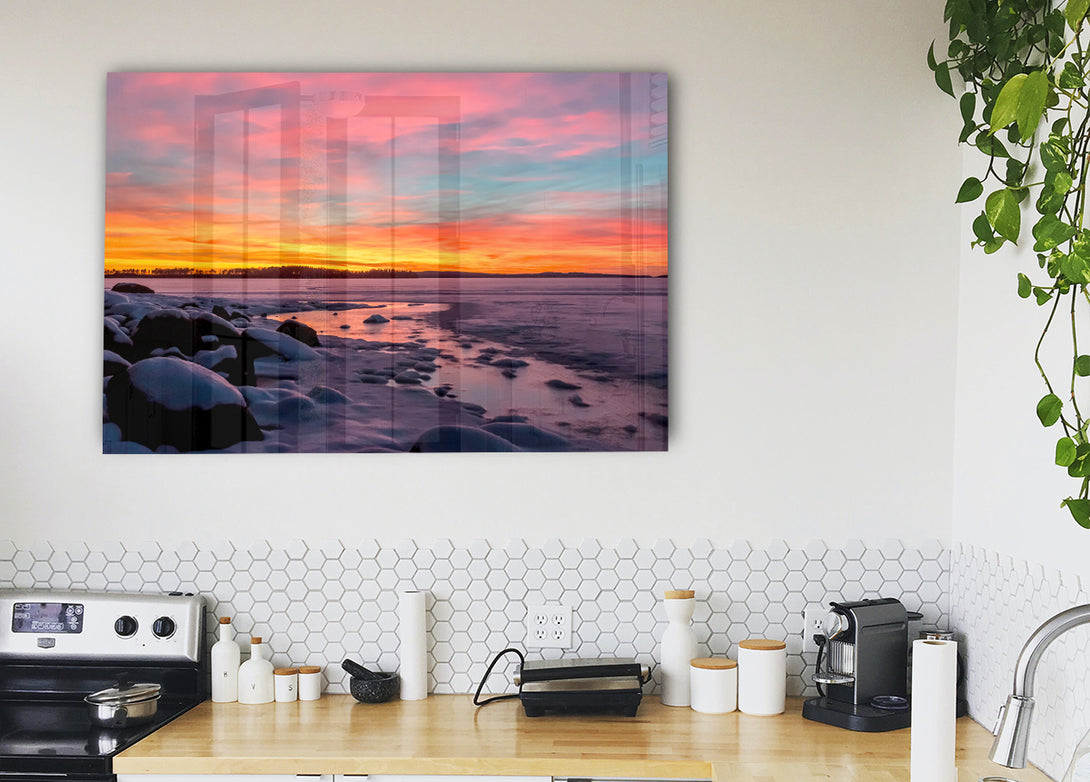 Low Tide Pebble Beach acrylic print, UV printed onto 5mm thick acrylic glass. Comes with everything you need to hang on your wall.
