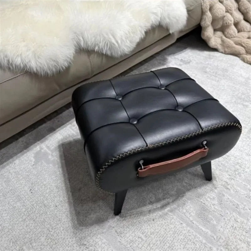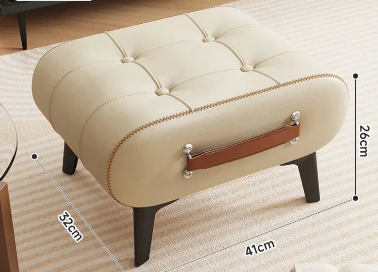 Crafted from genuine leather, this versatile piece functions as both a comfortable shoe changing seat and a sophisticated accent for your living room or entryway.