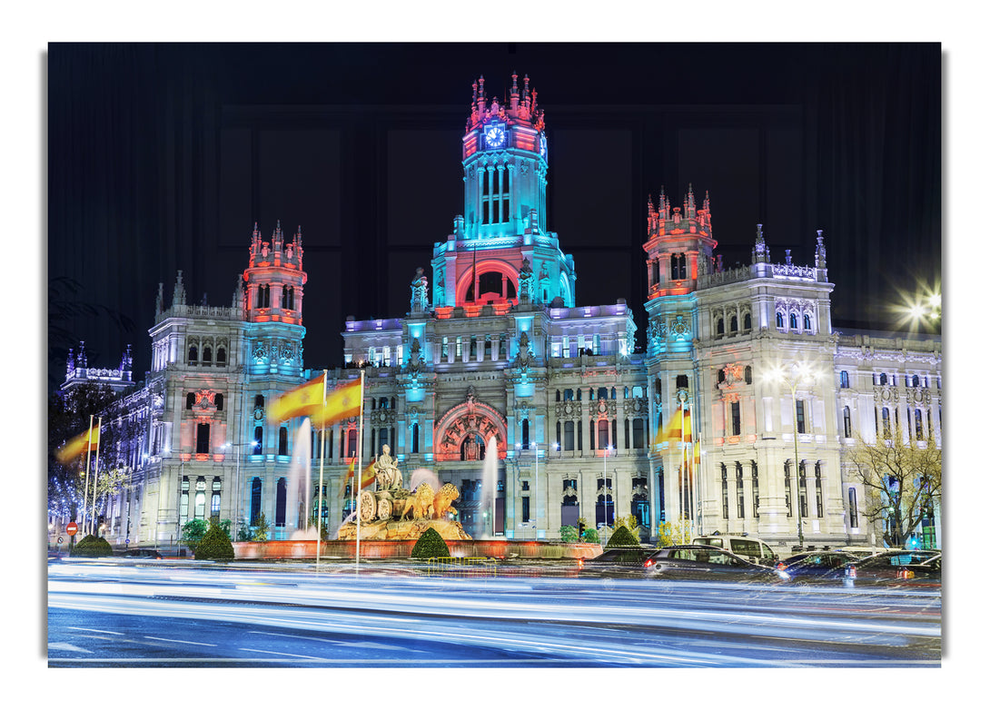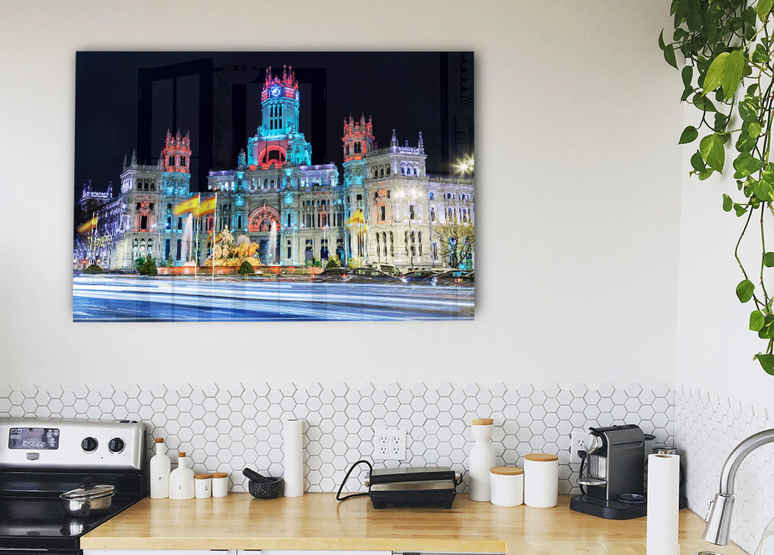 Madrid City Building At acrylic print, UV printed onto 5mm thick acrylic glass. Comes with everything you need to hang on your wall.