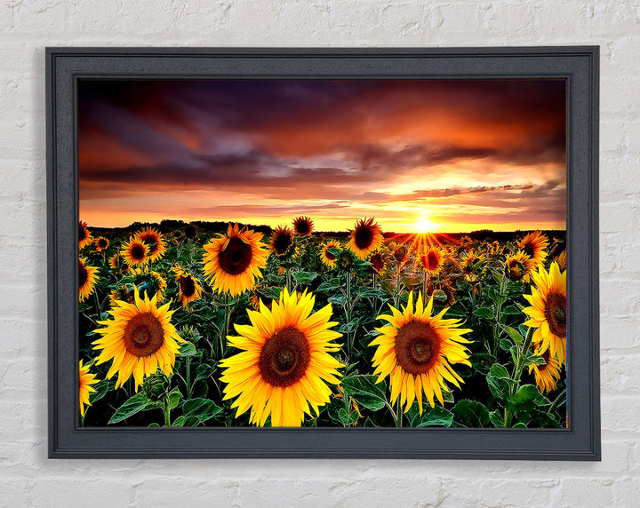 Introducing the Magic Landscape Sunflower Field Framed Print, a stunning piece of framed art that captures the beauty of a serene sunflower field. Available in six sizes, from small to oversized, this artwork fits perfectly in any space. Each print is handmade in the United Kingdom, ensuring top-notch quality and craftsmanship. The vibrant colours bring the sunflower field to life, adding a burst of sunshine to your home or office. Ready to hang, this framed art makes it easy to transform your space instantly. Enjoy the charm and warmth that this enchanting sunflower field brings to your decor.