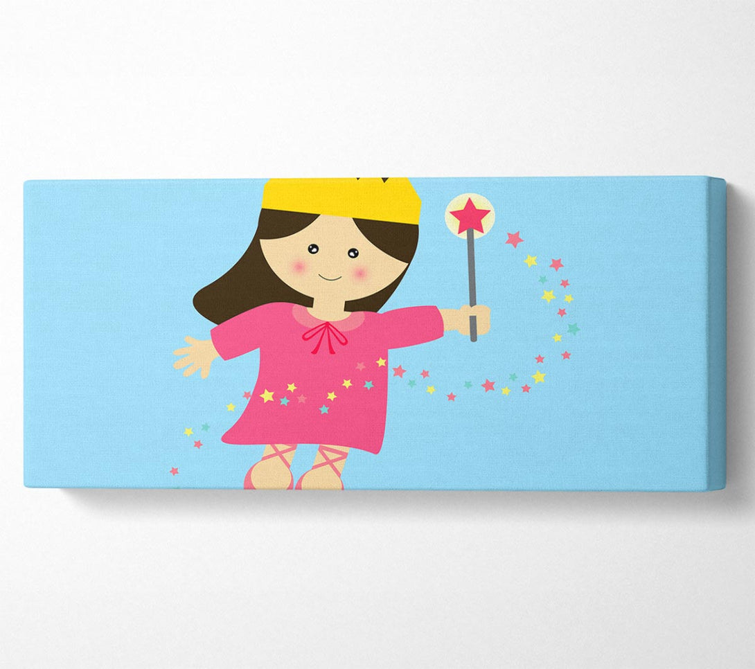Magical Princess Baby Blue canvas, printed on coated polyester canvas. Mounted on to a 44mm box frame, ready to hang.