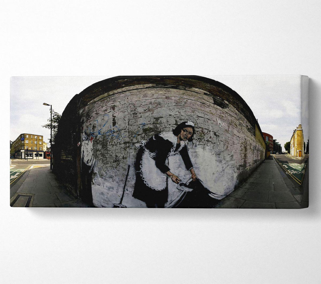 Maid Sweeping It Under The Carpet canvas, printed on coated polyester canvas. Mounted on to a 44mm box frame, ready to hang.
