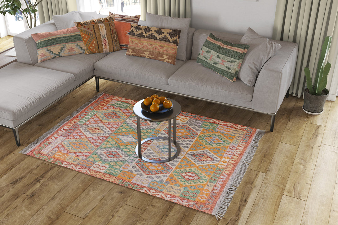 Why settle for one design when you can have two? A top favorite from our collection, this handwoven Afghan Kilim Rug features a fully reversible weave, giving you the flexibility to refresh your space effortlessly. Crafted with meticulous attention to detail, this wool kilim embodies the rich heritage of Afghan weaving. Its intricate patterns, passed down through generations, add cultural depth and timeless elegance to any décor.