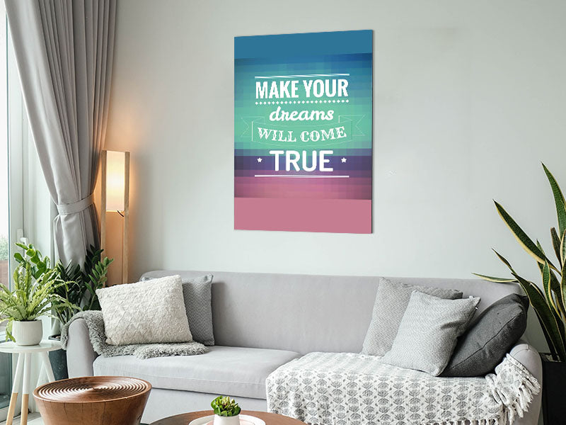 Make Your Dreams Printed on brushed aluminium dibond. A modern way to display art and easy to maintain.