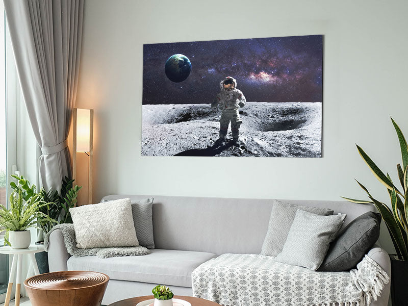 Man On The Moon Printed on brushed aluminium dibond. A modern way to display art and easy to maintain.