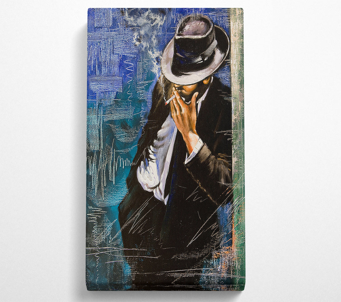 Man Smoking wide canvas, printed on coated polyester canvas. Mounted on to a 44mm box frame, ready to hang.