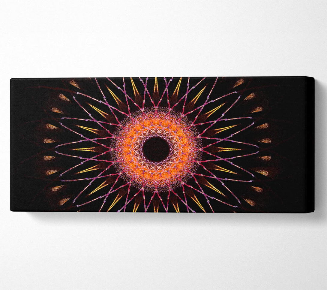 Mandala Vibes canvas, printed on coated polyester canvas. Mounted on to a 44mm box frame, ready to hang.