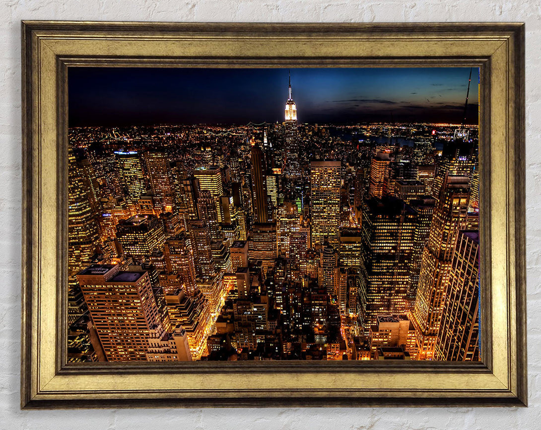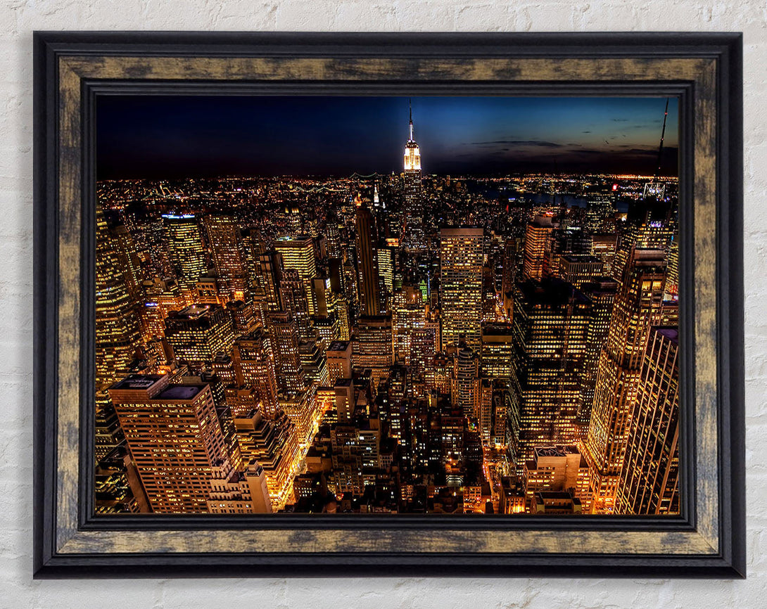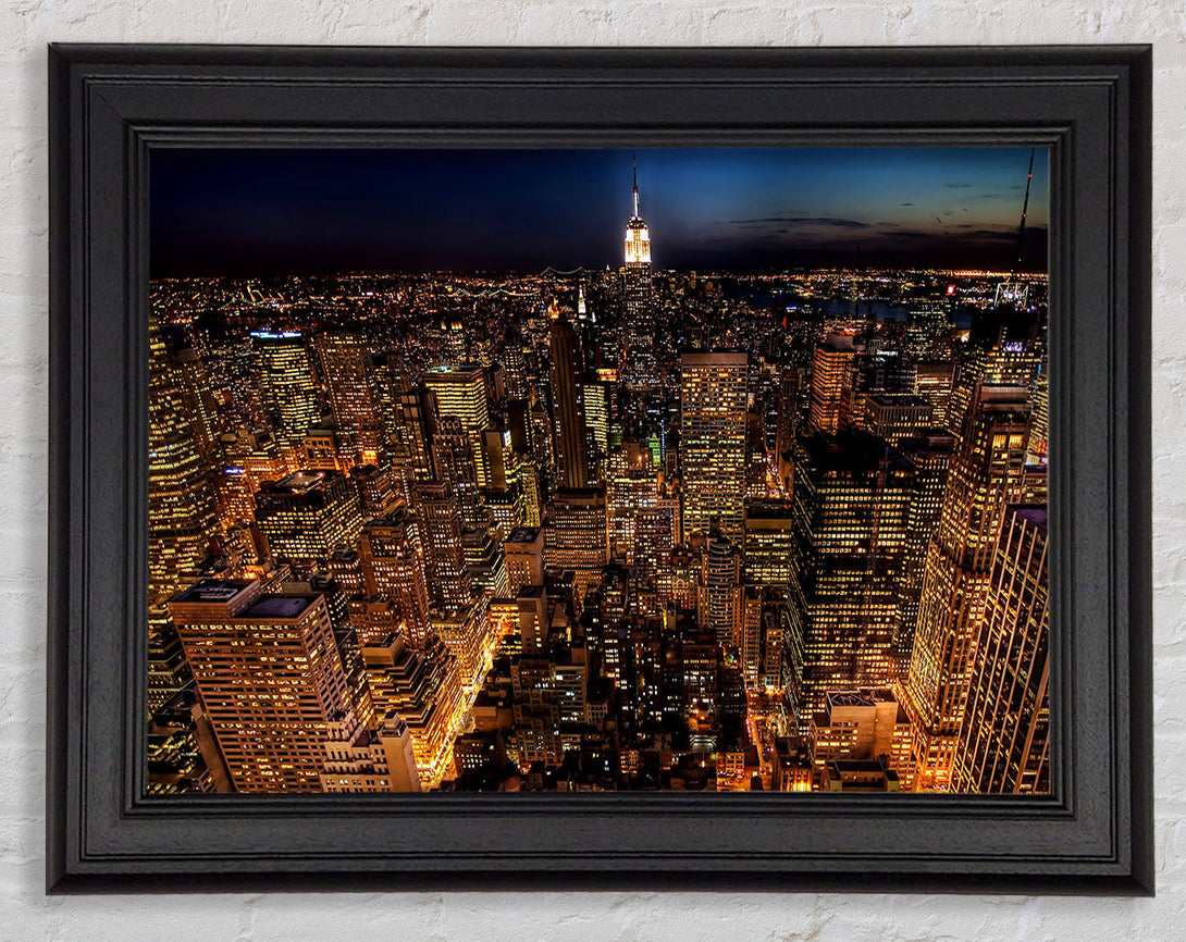 Manhattan Night Life Glow Framed Print