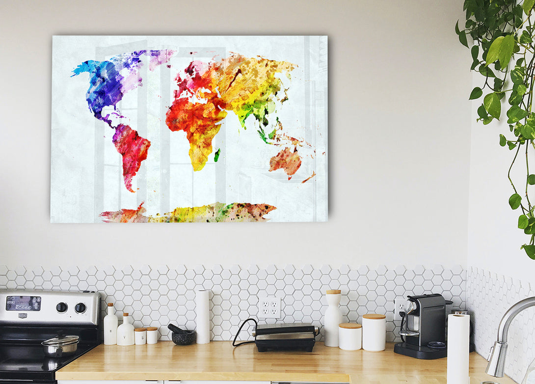 Map Of The World 6 acrylic print, UV printed onto 5mm thick acrylic glass. Comes with everything you need to hang on your wall.