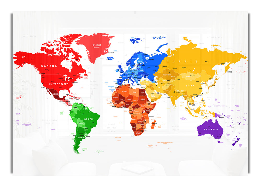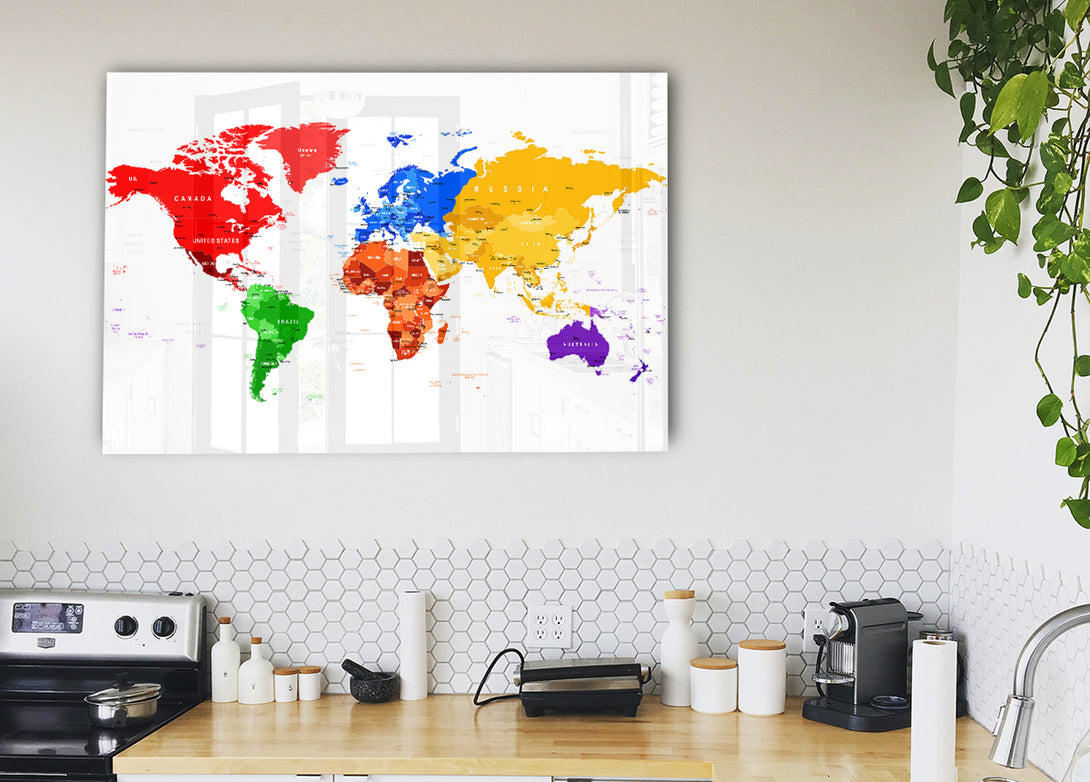 Map Of The World 9 acrylic print, UV printed onto 5mm thick acrylic glass. Comes with everything you need to hang on your wall.