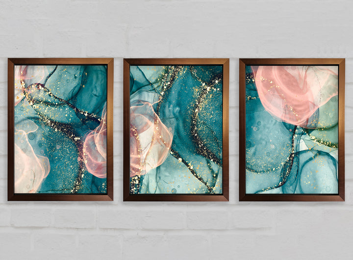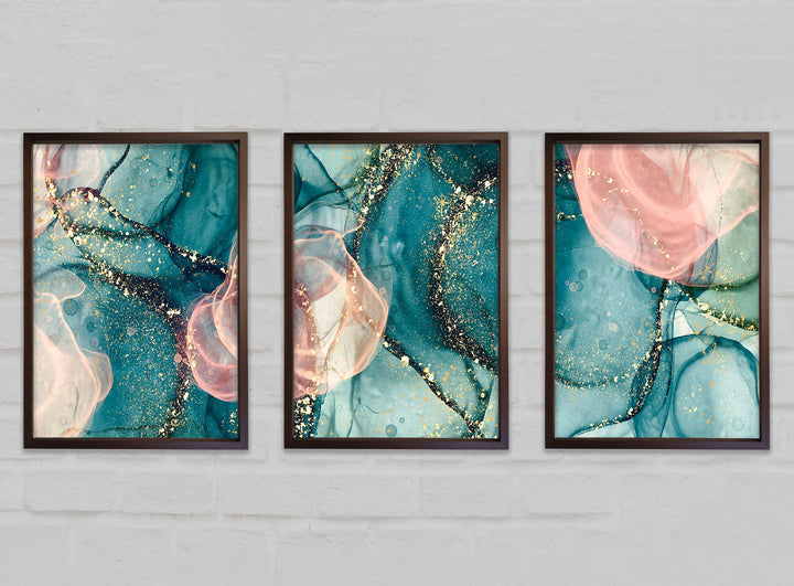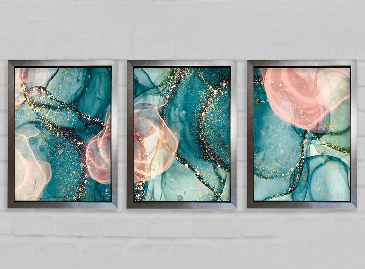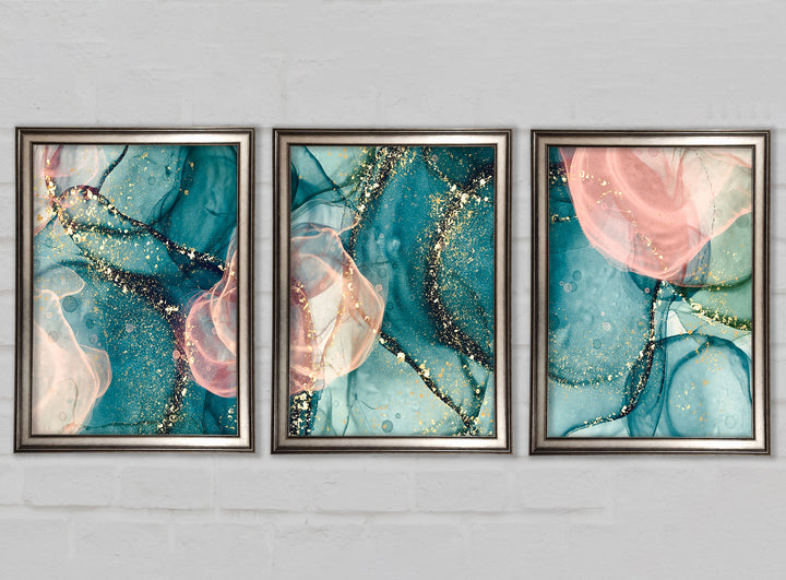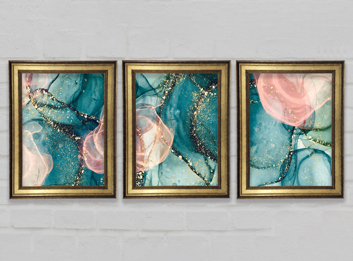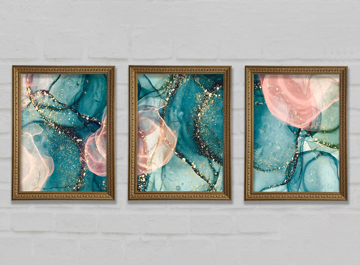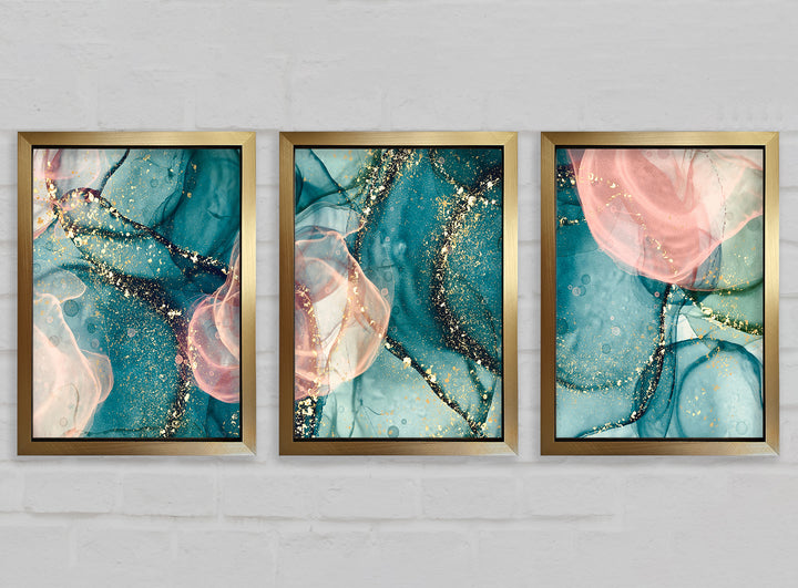 Marble Art Blue Pink and Gold 3 Piece Prints