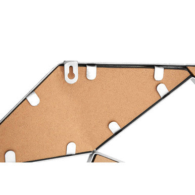 This polygonal wall mirror is a triumph of glass, metal and geometric principles. Its frame cut-out segments comprises a series of angled metal lines which traverse across the reflective glass surface and accentuate the lattice structure.
