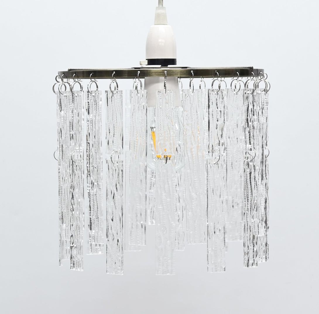 Create a striking focal point in your home with the Maren Clear Easy-Fit Pendant, exclusive to Pagazzi Lighting. Designed to dazzle, this contemporary pendant features clear acrylic flat rods suspended at varying heights, creating a dynamic, layered look that beautifully catches and diffuses light.