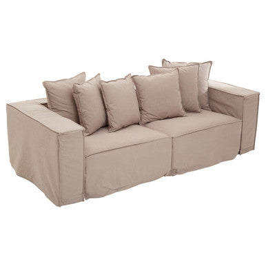 The Marseille sofa features three spacious seats and a low back aligned perfectly with its armrests. Upholstered in linen fabric, the sofa's grey colour coordinates with the matching cushions.