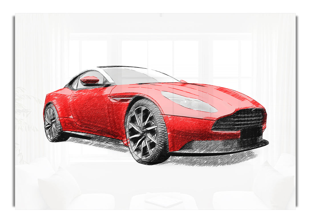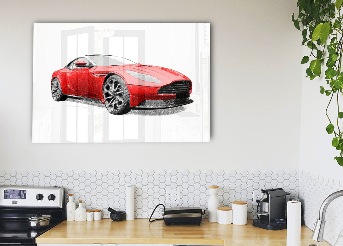Maserati Red Drawing acrylic print, UV printed onto 5mm thick acrylic glass. Comes with everything you need to hang on your wall.