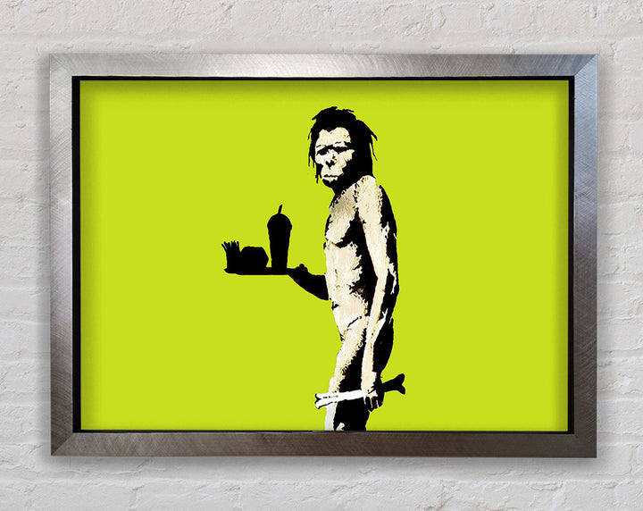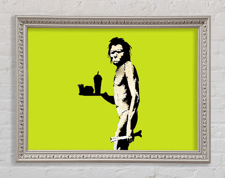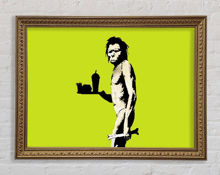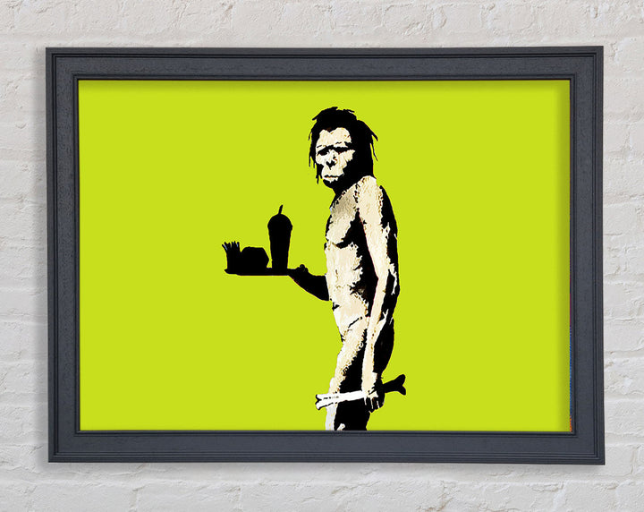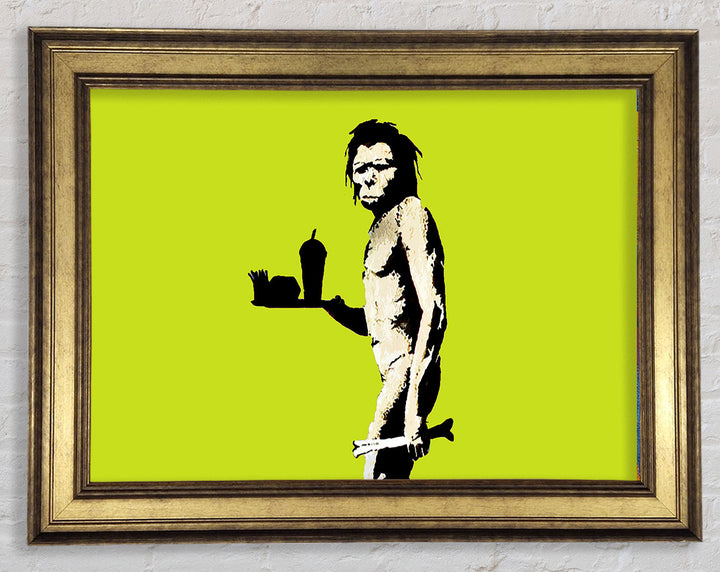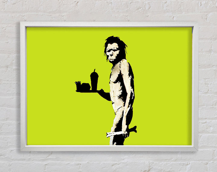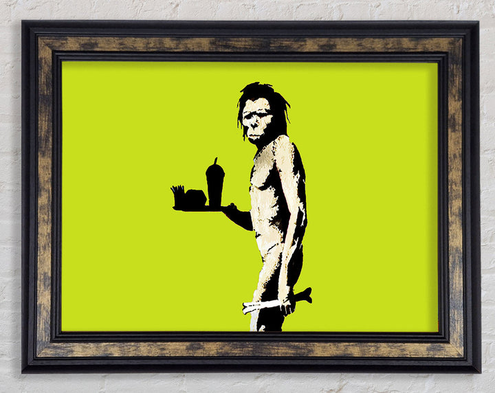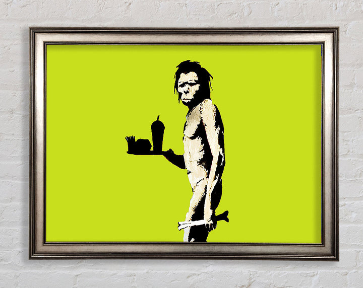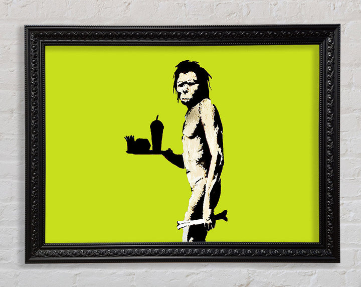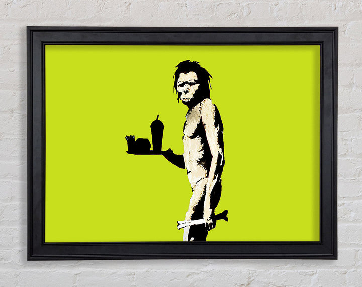 Banksy Mcdonalds Caveman Lime Framed Print