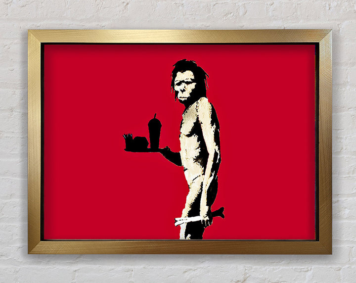 Introducing the McDonald's Caveman Red Framed Print, a unique piece of framed art that brings a touch of fun and nostalgia to any space. This delightful print features a playful caveman character set against a vibrant red background, sure to catch the eye and spark conversation. Available in six sizes, from small to oversized, this print can fit perfectly in any room, whether it's a cozy corner or a spacious wall.