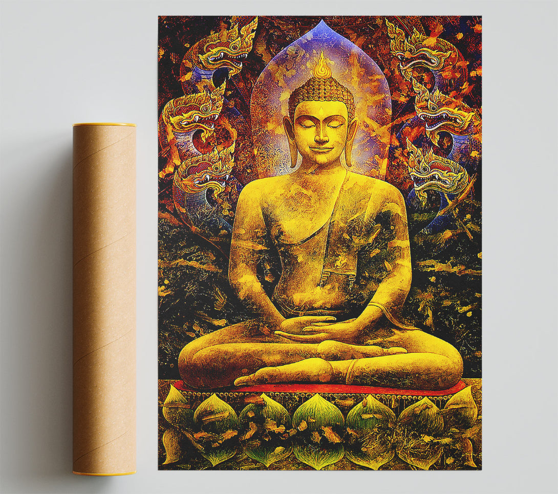 Meditating Buddha Dragons Poster