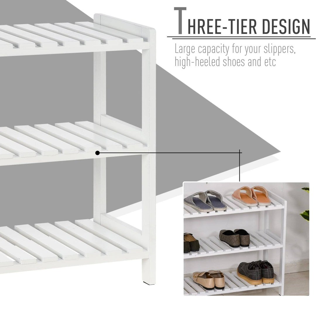 Medium-density fibreboard 3-Tier Slatted Shoe Rack White