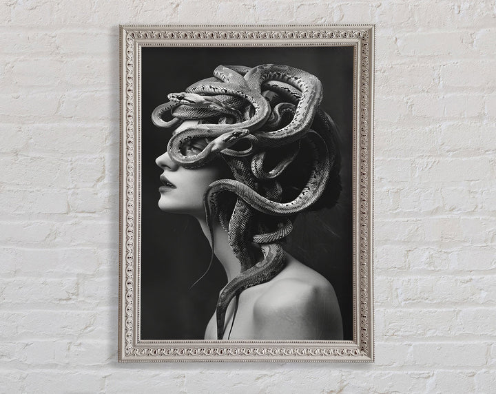 Introducing the Medusa Framed Print, a stunning piece of framed art that will captivate any room. This exquisite print is available in six different sizes, from small to oversized, ensuring a perfect fit for any space. Choose from a variety of colors to match your decor. Each piece is carefully handmade in the United Kingdom, showcasing exceptional craftsmanship and attention to detail. The Medusa Framed Print comes ready to hang, making it a hassle-free addition to your home or office. Elevate your interior design with this striking artwork that combines beauty and quality in every frame.