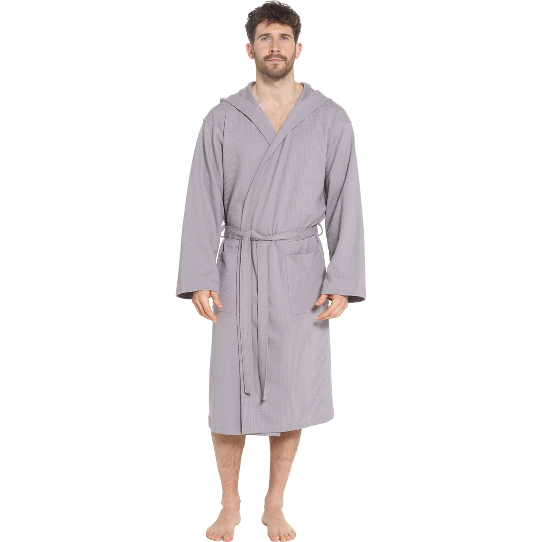 Men’s Hooded Waffle Cotton Bathrobe Grey Super Absorbent Spa Robe Luxury Dressing Gown for Home & Loungewear by OLIVIA ROCCO