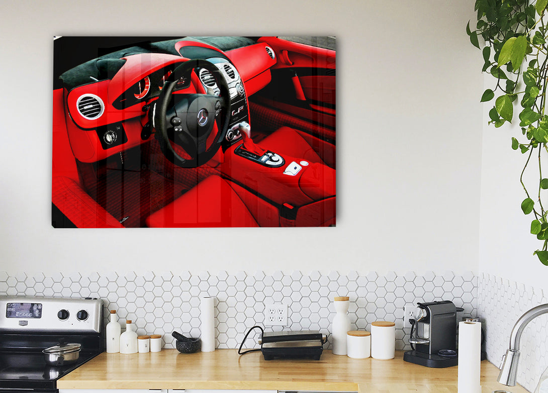 Mercedes Interior acrylic print, UV printed onto 5mm thick acrylic glass. Comes with everything you need to hang on your wall.