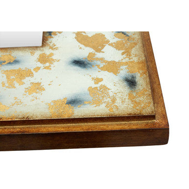 With a distressed frame, this mirror carries the worn in look of an object with a lot of history. The metallic effect of the gold leaf embossed on the border helps to add brightness to the mirror, which in turn helps to brighten the room.