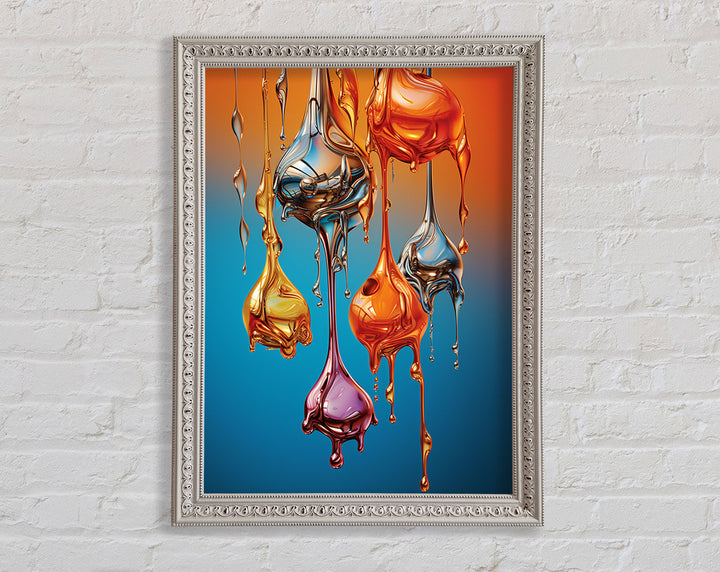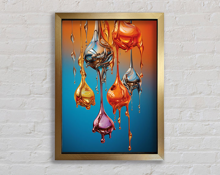 Introducing the Metallic Drops Framed Print, a stunning piece of framed art that adds a touch of elegance to any space. Handcrafted in the United Kingdom, this artwork features intricate metallic drops that catch the light beautifully. Available in six sizes, from small to oversized, it fits perfectly in any room, whether it's a cozy corner or a large wall. Choose from a variety of colors to match your decor. Each piece is ready to hang, making it easy to transform your home instantly. Elevate your living space with this unique, handmade framed print that combines quality craftsmanship with artistic flair.
