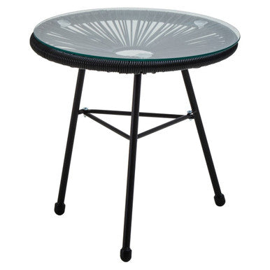 This patio set is a modern, unconventional take on classic. It provides endless comfort, with its black steel base and rattan rope construction, featuring a dual tone gradient design, this set adds a modern twist to outdoor spaces.