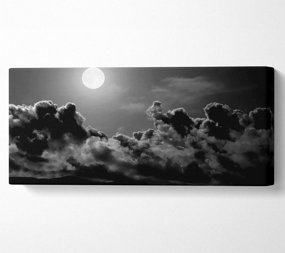 Midnight Clouds B n W canvas, printed on coated polyester canvas. Mounted on to a 44mm box frame, ready to hang.