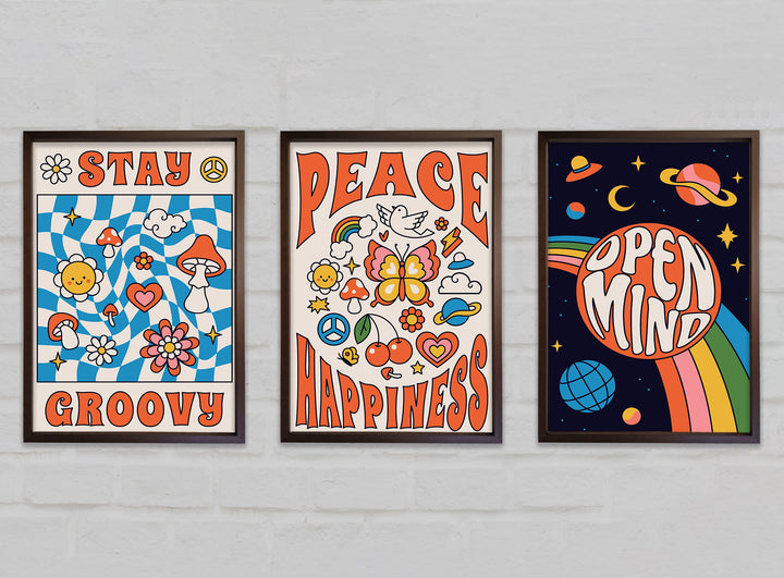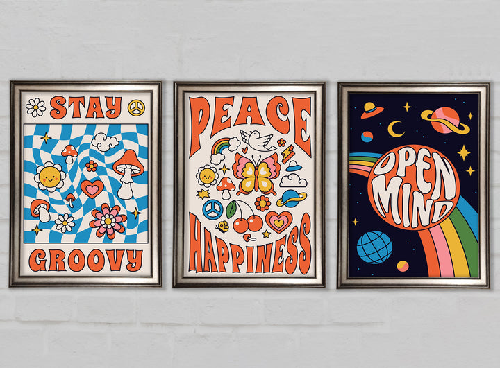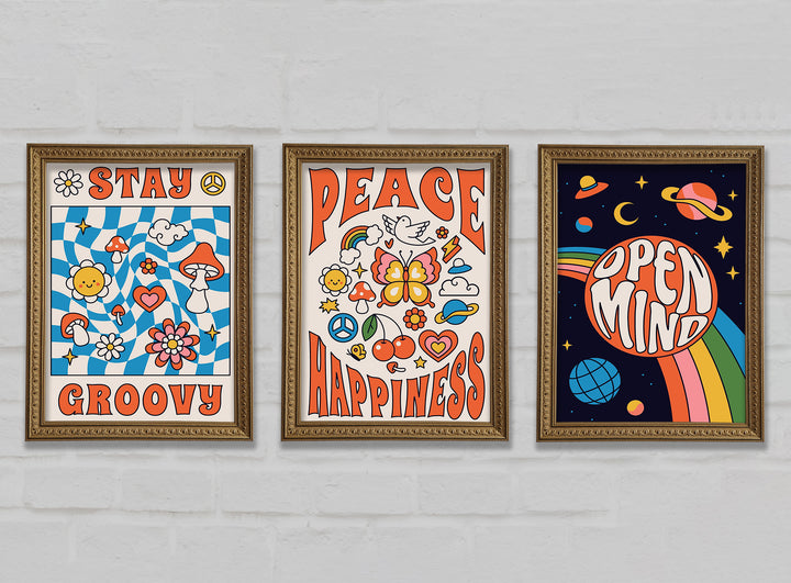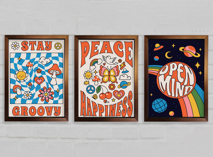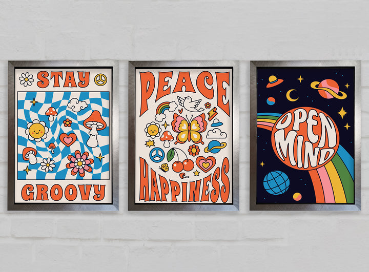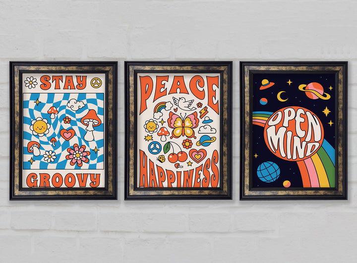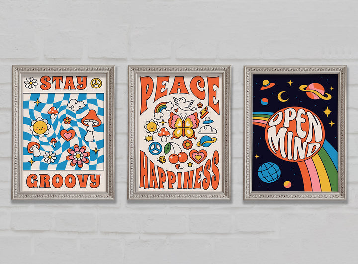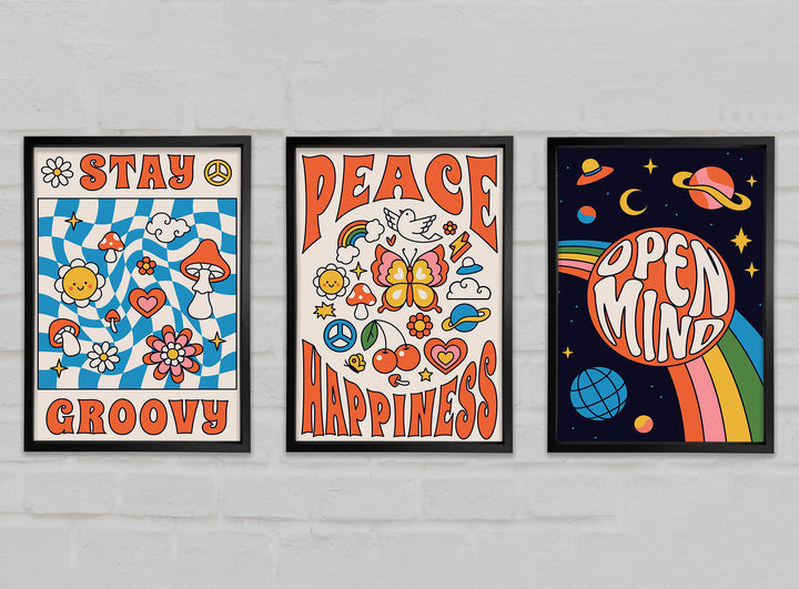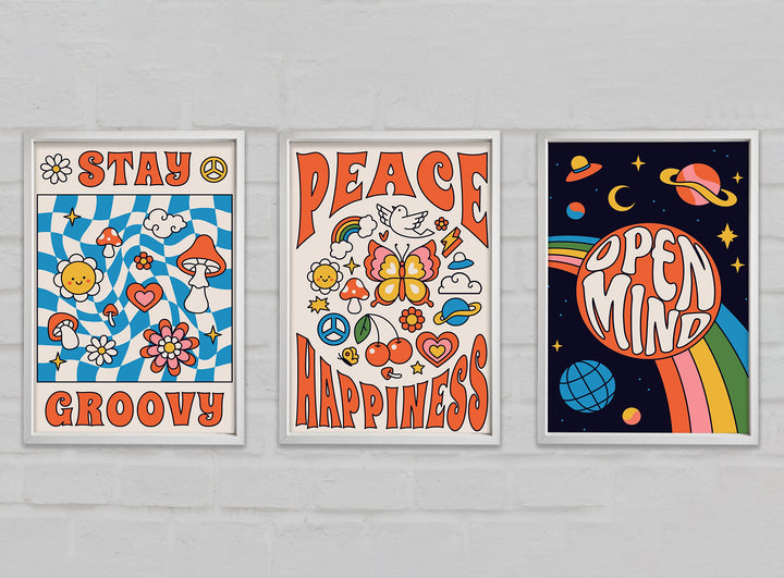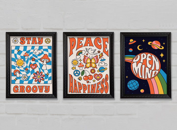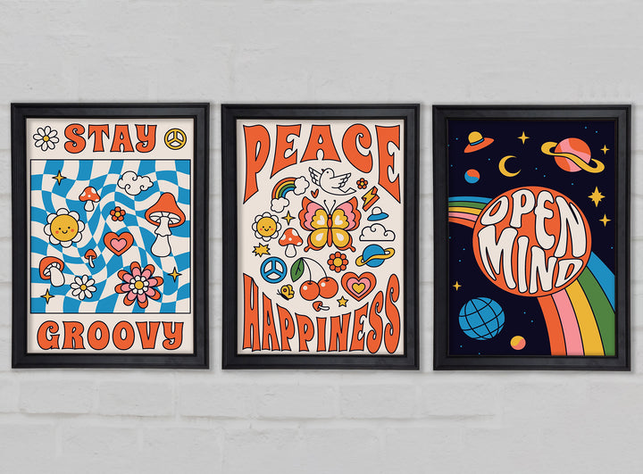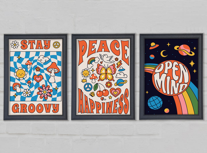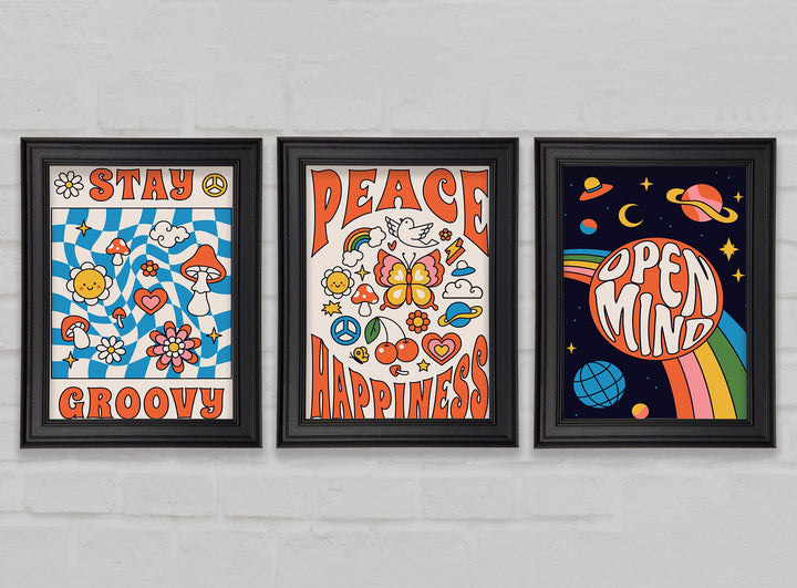 Mindfulness And Positivity set of 3 framed print wall art, available in mutiple frame colours. Ready to hang from the box and handmade in the United Kingdom.