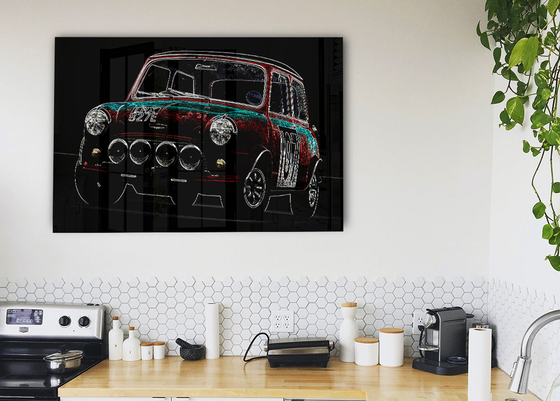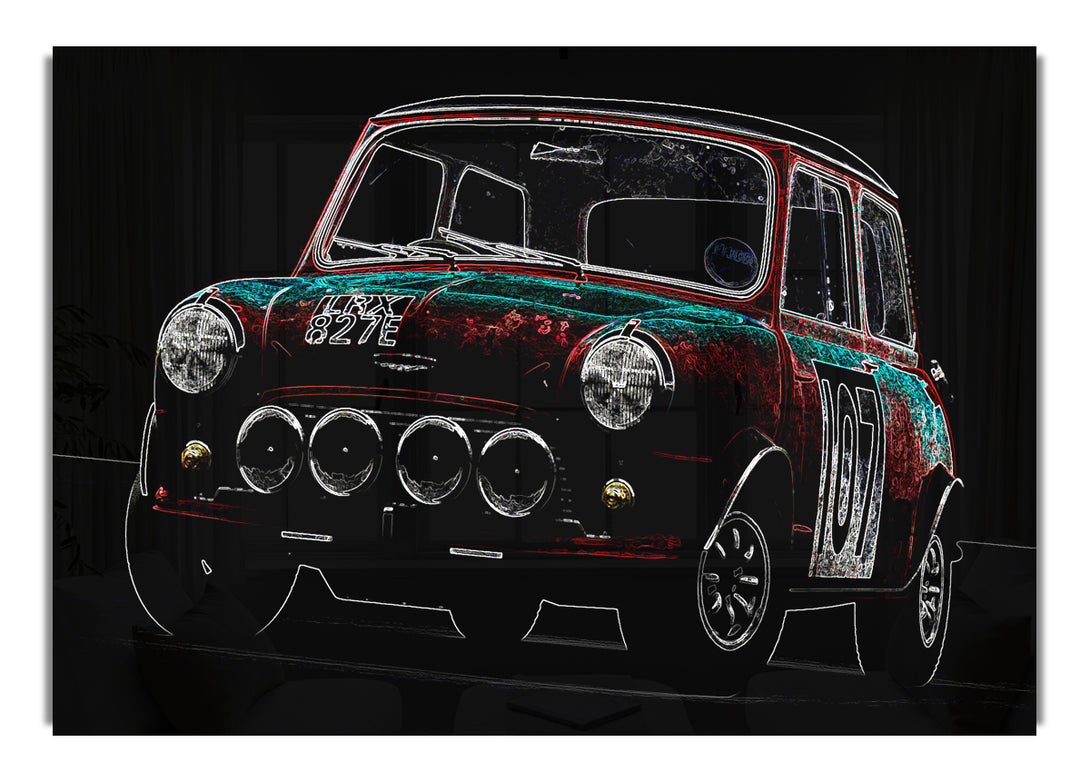 Mini Cooper Front acrylic print, UV printed onto 5mm thick acrylic glass. Comes with everything you need to hang on your wall.