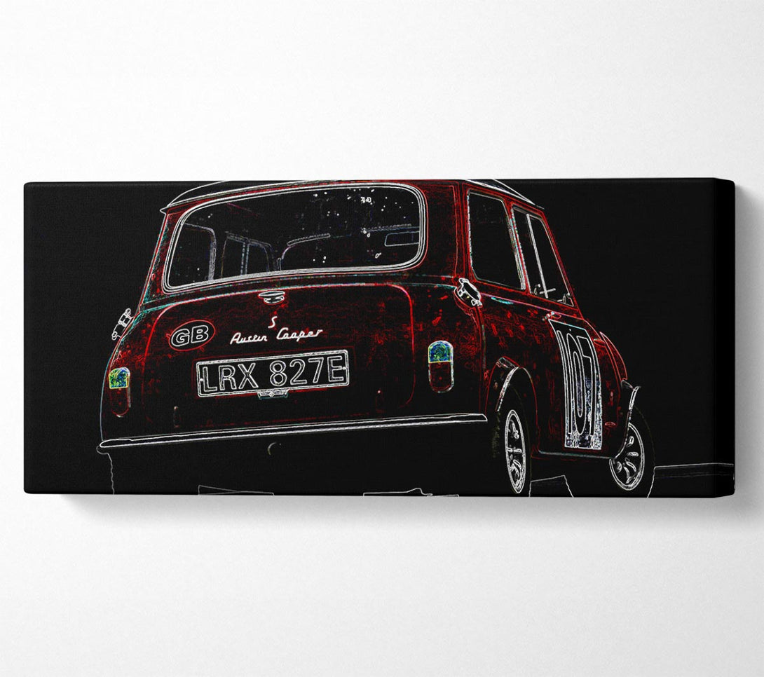 Mini Cooper Rear canvas, printed on coated polyester canvas. Mounted on to a 44mm box frame, ready to hang.