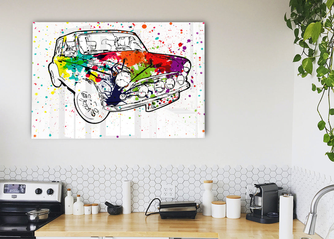 Mini Rainbow Paint Splat acrylic print, UV printed onto 5mm thick acrylic glass. Comes with everything you need to hang on your wall.