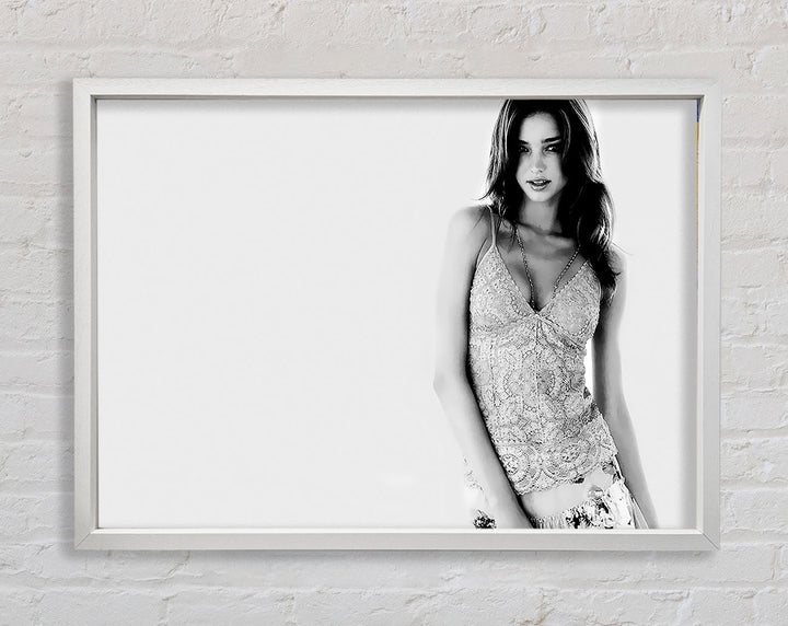 Bring elegance to your space with the Miranda Kerr B n W Framed Print. This stunning piece of framed art captures the timeless beauty of Miranda Kerr in a striking black and white portrait. Available in six different sizes, from small to oversized, this print can fit any wall in your home. Choose from a variety of frame colors to perfectly match your decor. Each item is handmade in the United Kingdom, ensuring top-notch craftsmanship and attention to detail. Ready to hang upon arrival, this framed print offers a hassle-free way to add a touch of sophistication and style to any room.