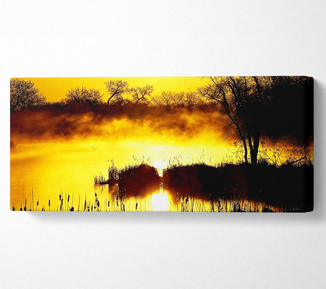 Picture of Misty Yellow Lake Side Panoramic Canvas Wall Art