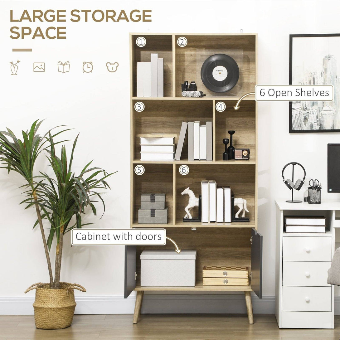 Modern Bookcase with Bottom Cabinet and 6 Open Shelves