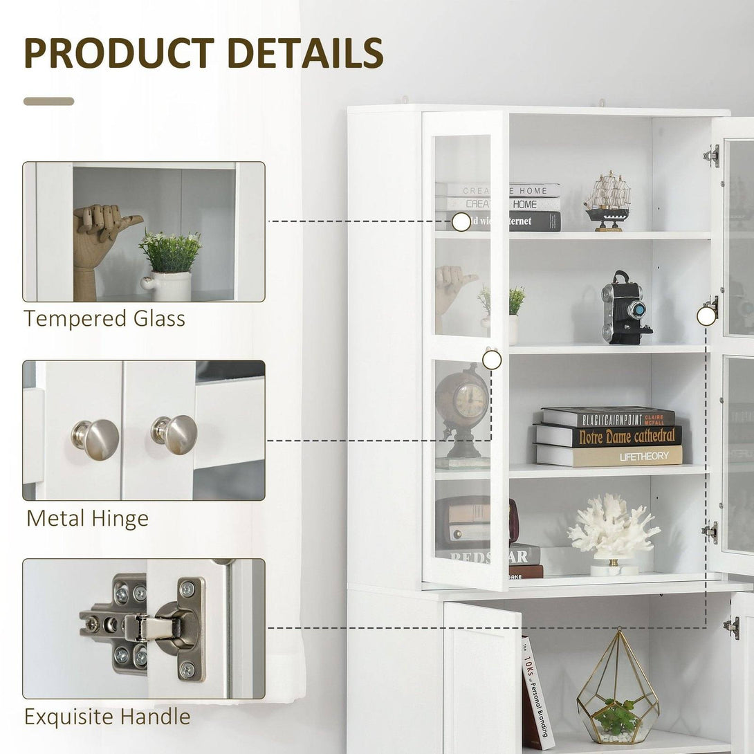 Create a tidy and presentable home with ease - do it with this HOMCOM display cabinet. It's formed of a top cabinet and bottom cupboard for plenty of storage; the upper is fitted with tempered glass doors so you can see through and display your favourite items beautifully. Also inside the top cabinet, there are two adjustable shelves to store items at the position you want. Made from MDF, this unit is durable - perfect for the everyday, and it's finished with safe anti-tipping straps.