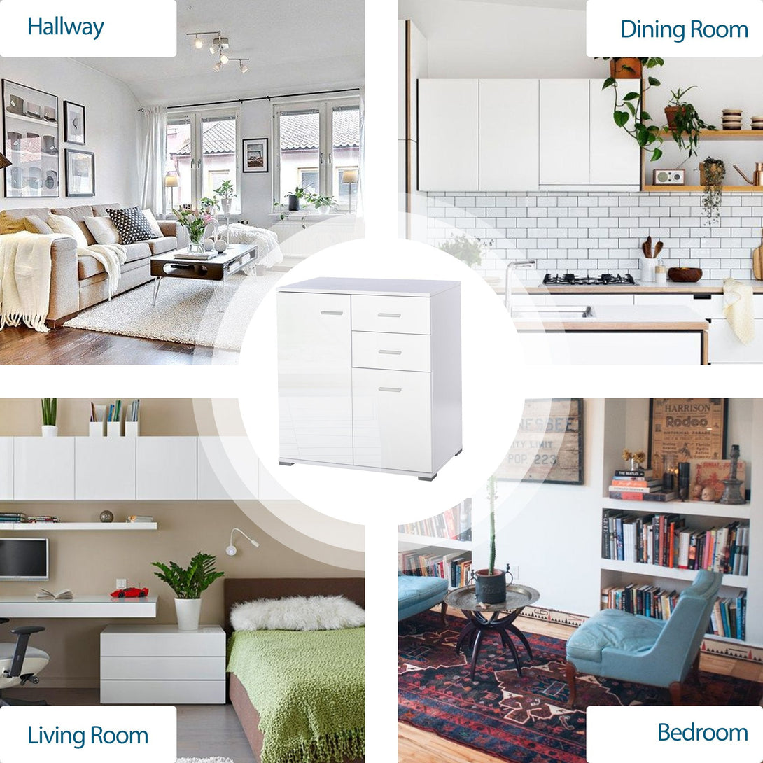 This contemporary and stylish high gloss cabinet is an ideal option for home furniture. Featuring 2 doors and 2 drawers, it provides sufficient storage space. On the top it can also be used to place vases, photo albums, or anything you would like to as a table. There are two colours for you to choose.